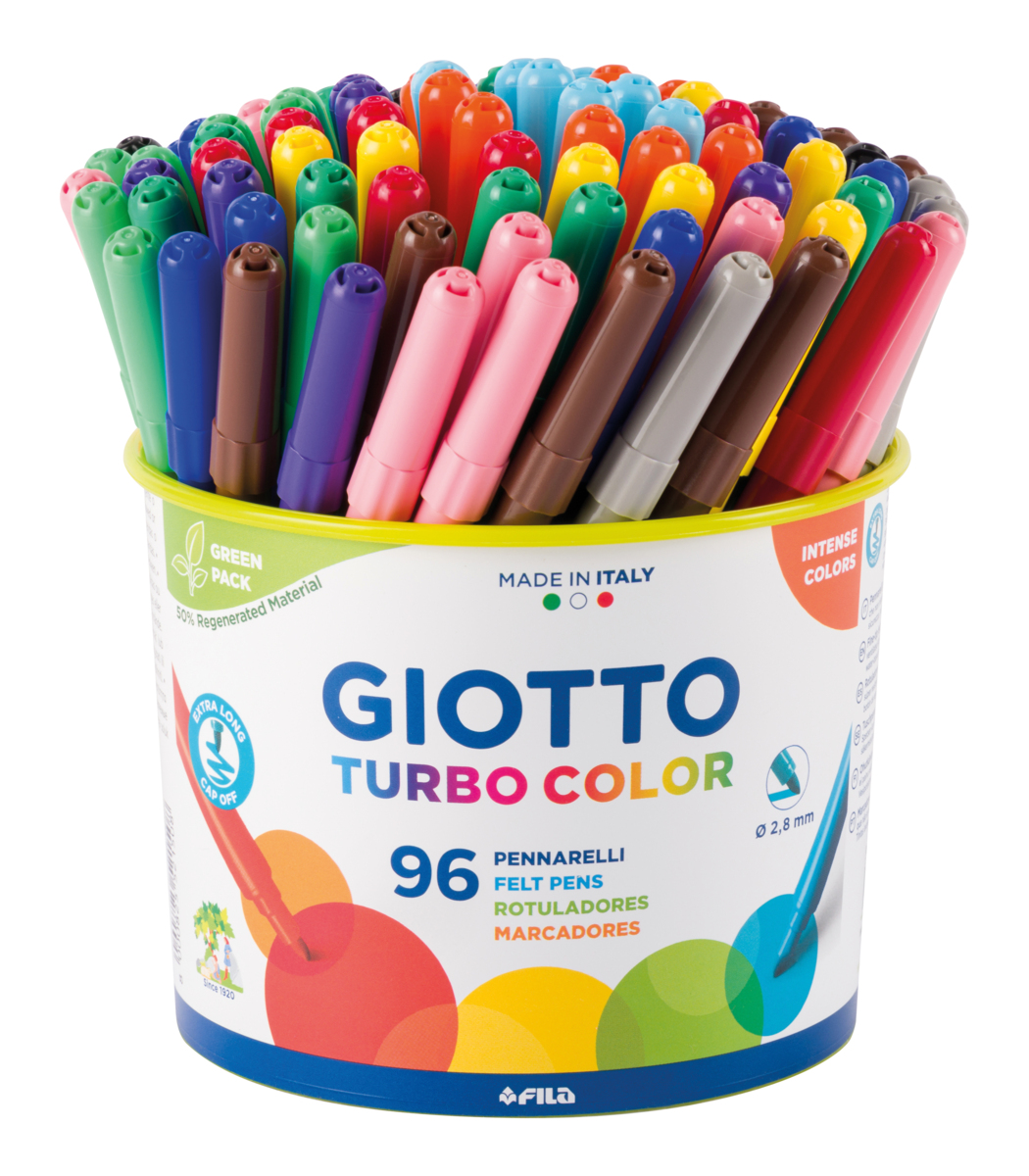 144 st/fp. 12x12 färger. Smala fiberpennor av hög kvalitet i intensiva färger med en extra tålig och åtsittande spets. Spetsen går inte att trycka in i pennan. Ventilerad huv med säkerhetsplugg som gör den kvävningssäker. Linjebredd från 0,6 mm. Spetsbredd 2,8 mm. Vattenbaserat bläck som går lätt att tvätta av från de flesta textilier i maskintvätt 40 °C. Tvättas av från huden med tvål och vatten. Förpackning gjord utav återvunnen plast. PVC-fri. Från 3 år.
