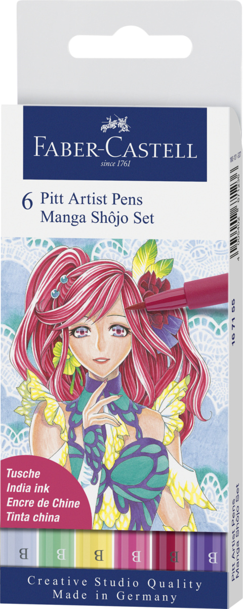 6 st/fp. Fiberpennor med penselspets som ger fina och precisa linjer. Kraftigt pigmenterat, vattenfast tusch med hög ljusbeständighet. Luktfria, syrafria och pH-neutrala.