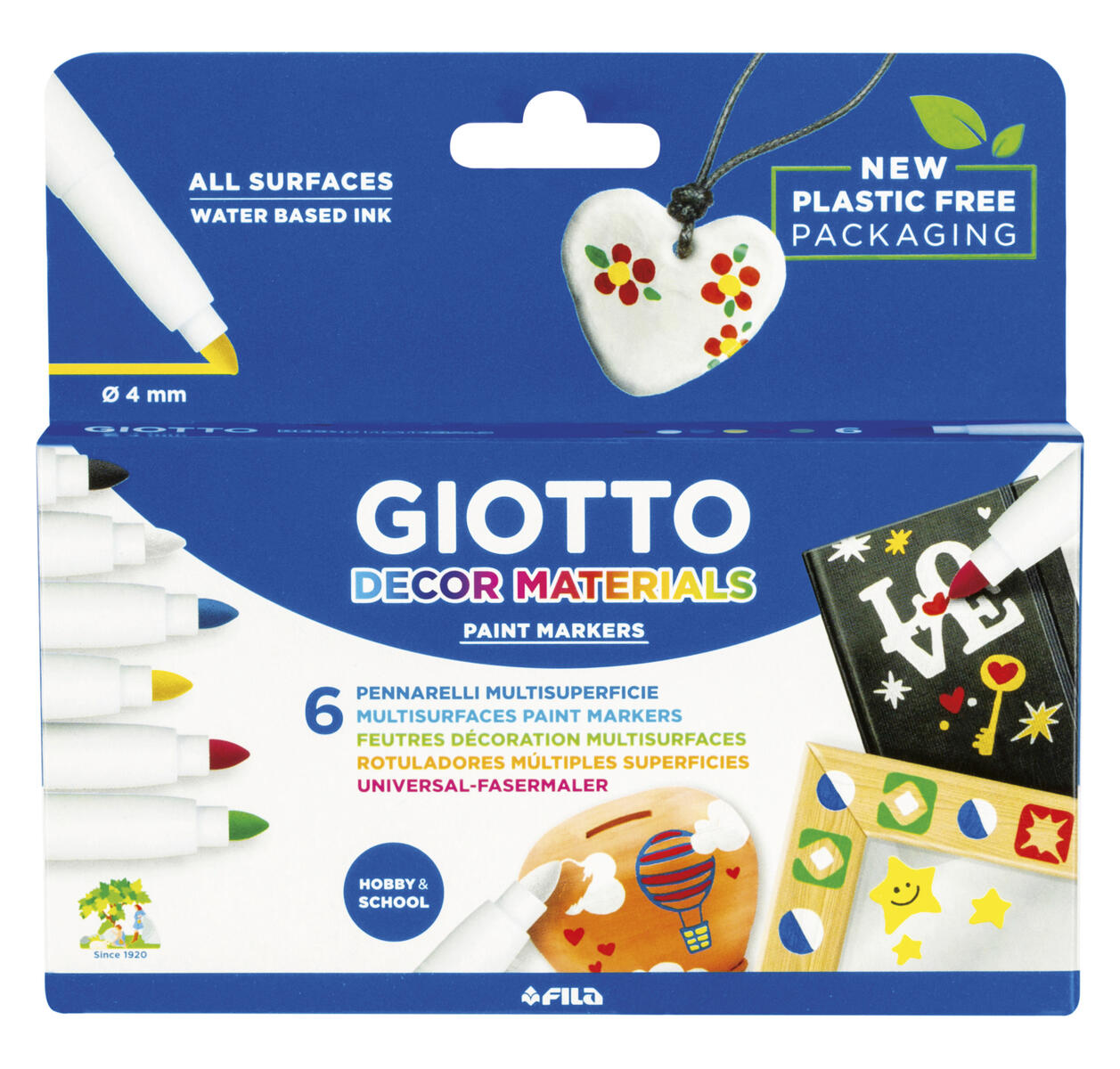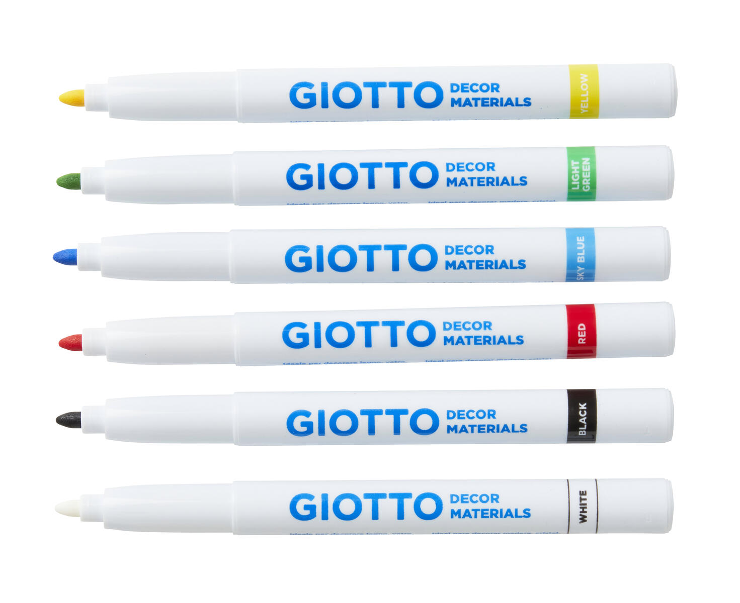 6 st/fp. Vattenbaserad tuschpenna med mycket god täckförmåga. Medeltjock spets och ljusäkta. Perfekt för dekorering av kartong, trä, glas, läder, keramik, plast, sten och metall. Ventilerad säkerhetshuv. Innehåller: gul, röd, blå, grön, svart och vit. Förvaras horisontellt. PVC-fri. Från 3 år.