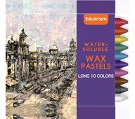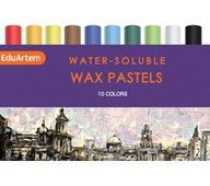 10 st/ask. Vattenlösliga vaxkritor i högsta kvalitet. Mycket mjuka och följsamma. Alla färger kan blandas. Lämpliga för olika tekniker och material. Kan målas över med vatten eller användas direkt på fuktat papper. PVC-fri. Från 3 år.