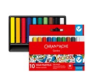 15 st/ask. Caran d'Ache Classic. Vattenlösliga vaxkritor i högsta kvalitet. Mycket mjuka och följsamma. Alla färger kan lätt blandas till nya nyanser. Lämpliga för olika tekniker och material. Kan målas över med vatten eller användas direkt på fuktat papper. PVC-fri. Från 3 år.