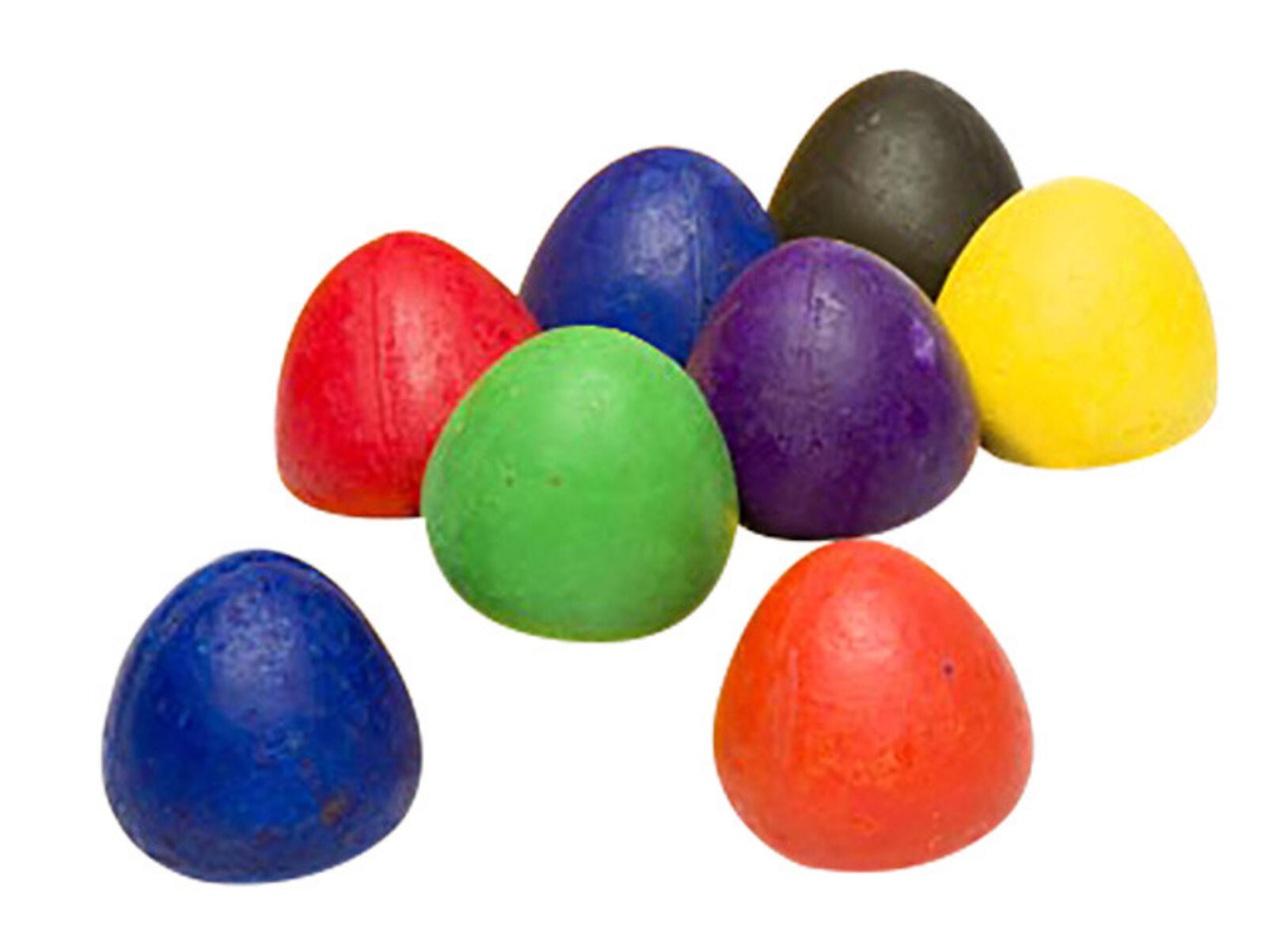 30 st/fp. Platta vaxkritor i rejäl trekantsform. Bra grepp för motoriskt otränade händer. Med 5 cm breda sidor passar kritorna särskilt bra till frottage och färgläggning av större ytor. 3 kritor/färg. Innehåller vit, gul, orange, röd, lila, blå, turkos, grön, brun, svart. Plastförpackning med återförslutningsbart lock. PVC-fri. Från 3 år.
