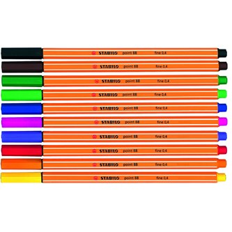 10 st/fp. Linjebredd 0,4 mm. Fineliner med metallförstärkt extra fin spets, för skrivning, teckning och skissering, då den ger ett exakt streck. Vattenbaserat luktfritt bläck. Skrivlängd ca 2 000 m. Pennkropp och lock i polypropen.