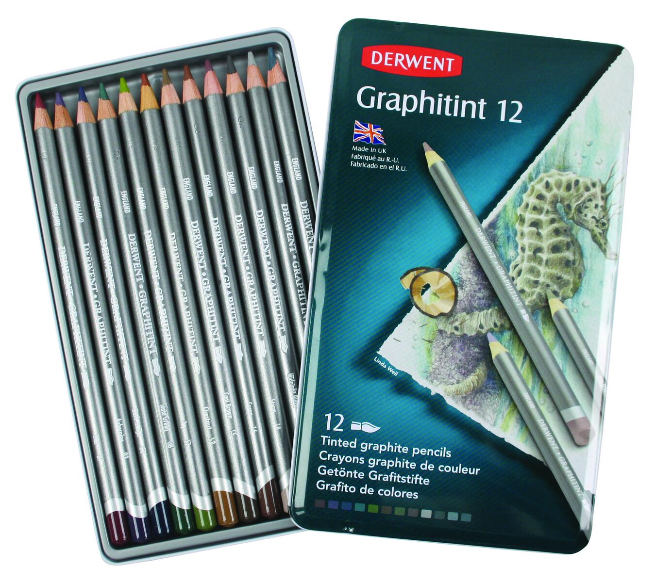 12 st/fp. Vattenlöslig och laverbar färgpenna. Vid lavering med vatten liknar resultatet tusch. Permanent efter torkning. 12 olika färger. Levereras i plåtask.