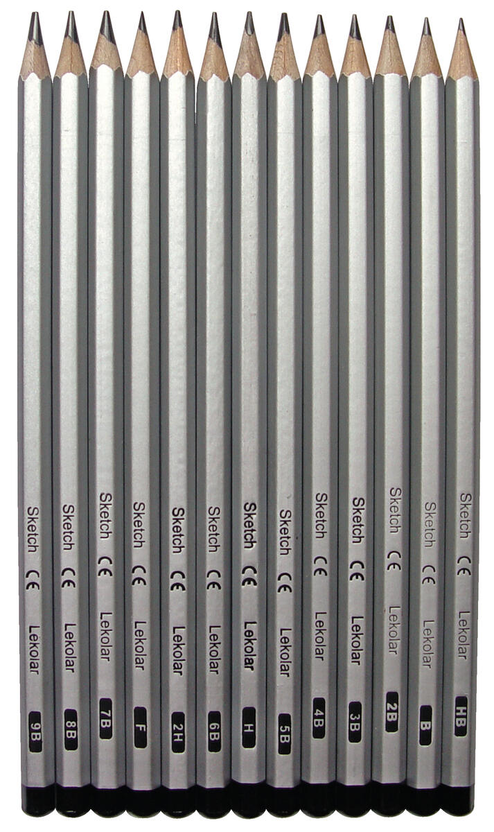 12 st/fp. Lekolar grafitpennor av hög kvalitet för blyertsteckning och teknisk ritning. Ingår hårdhetsgraderna 8B-2B, B, HB, F, H, 2H. 1 penna av varje. PVC-fri.