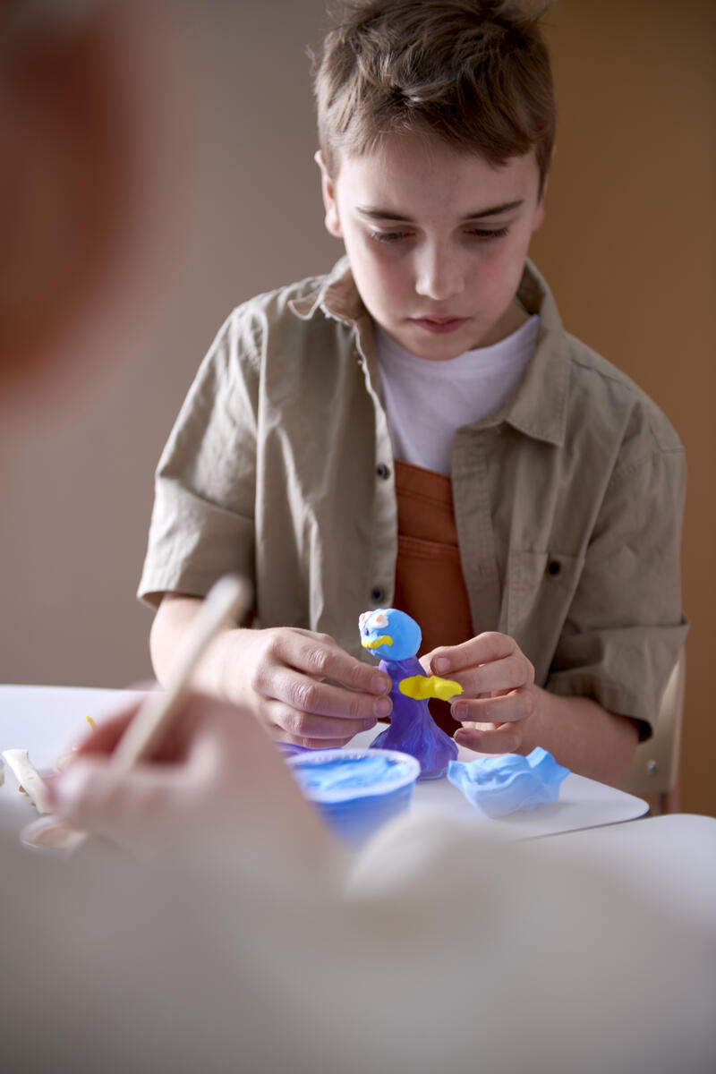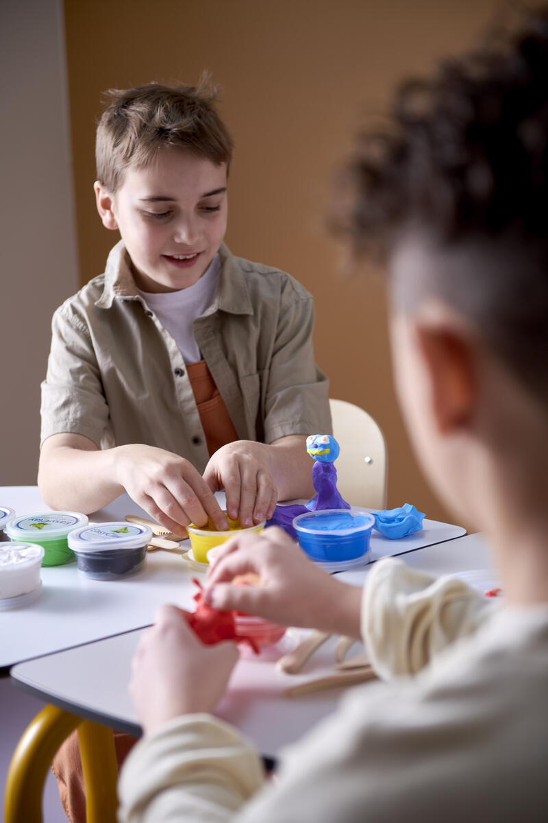 12x14 g/fp. Materialet består av små styrofoamkulor med bindemedel och är mycket lätt att forma och skulptera. Foamleran kan användas till objekt men också som dekoration på t.ex. ramar och askar. Leran lufttorkar på ca 24 timmar. Innehåller färgerna röd, gul, mörkblå, mörkgrön, svart, vit, mörklila, orange, rosa, ljusgrön, blå och cerise. Varje färg är förpackad i transparent plastburk med återförslutningsbart lock. PVC-fri. Från 3 år.