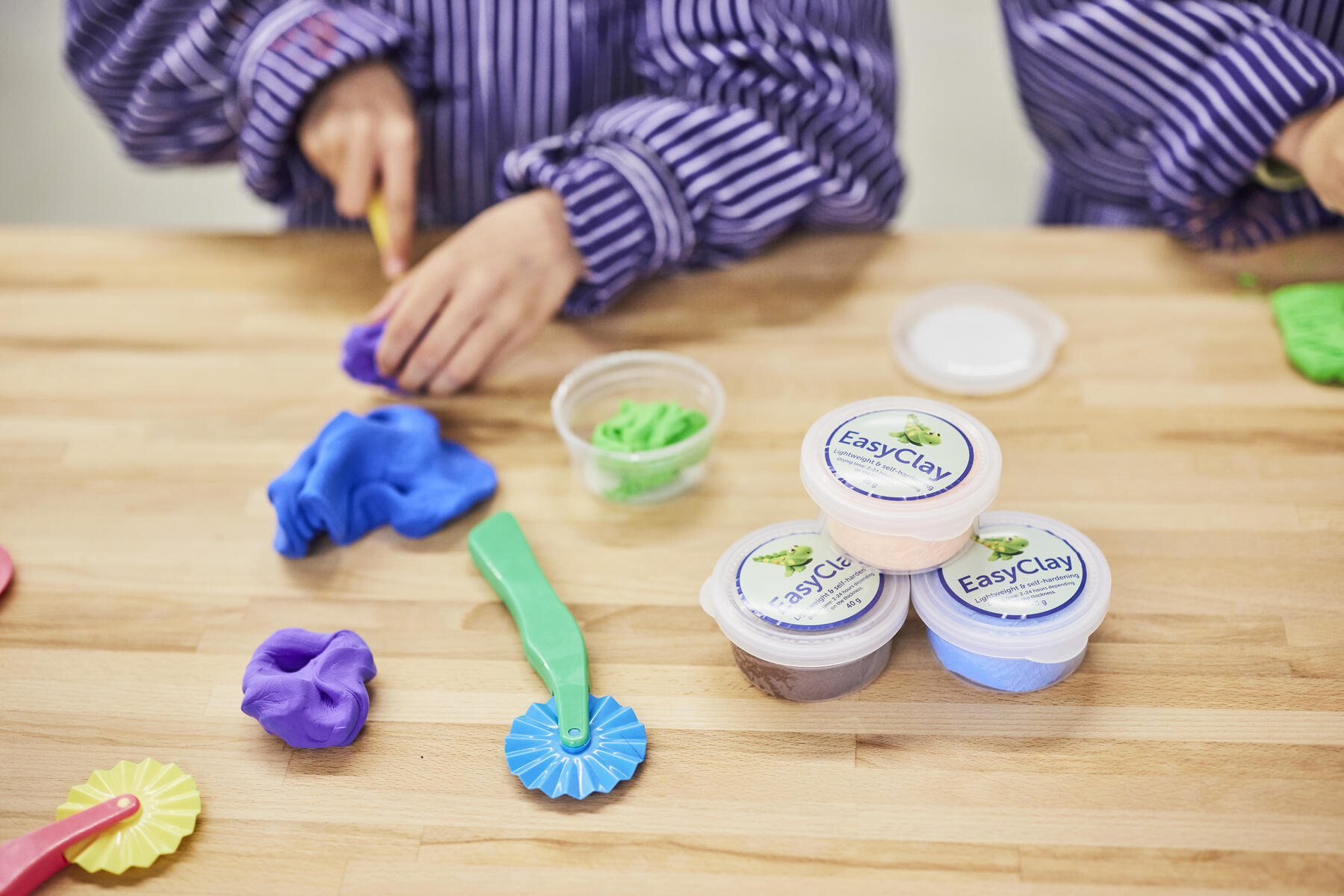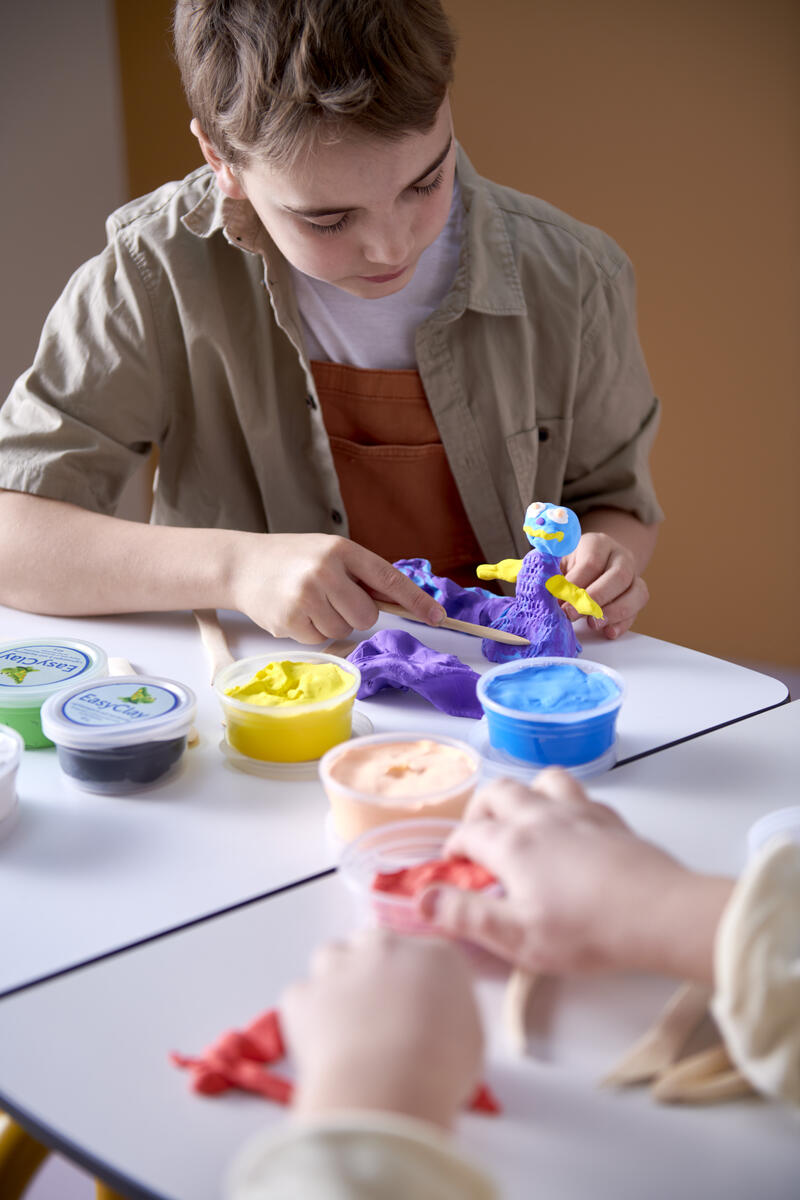 650 g/fp. Mjuk, smidig och lätt lera som lufttorkar på 2-24 timmar beroende på modellens storlek. Levereras i transparent hink med återförslutningsbart lock. PVC-fri. Från 3 år.