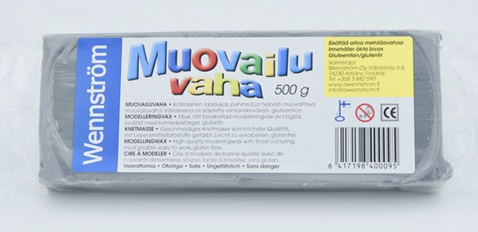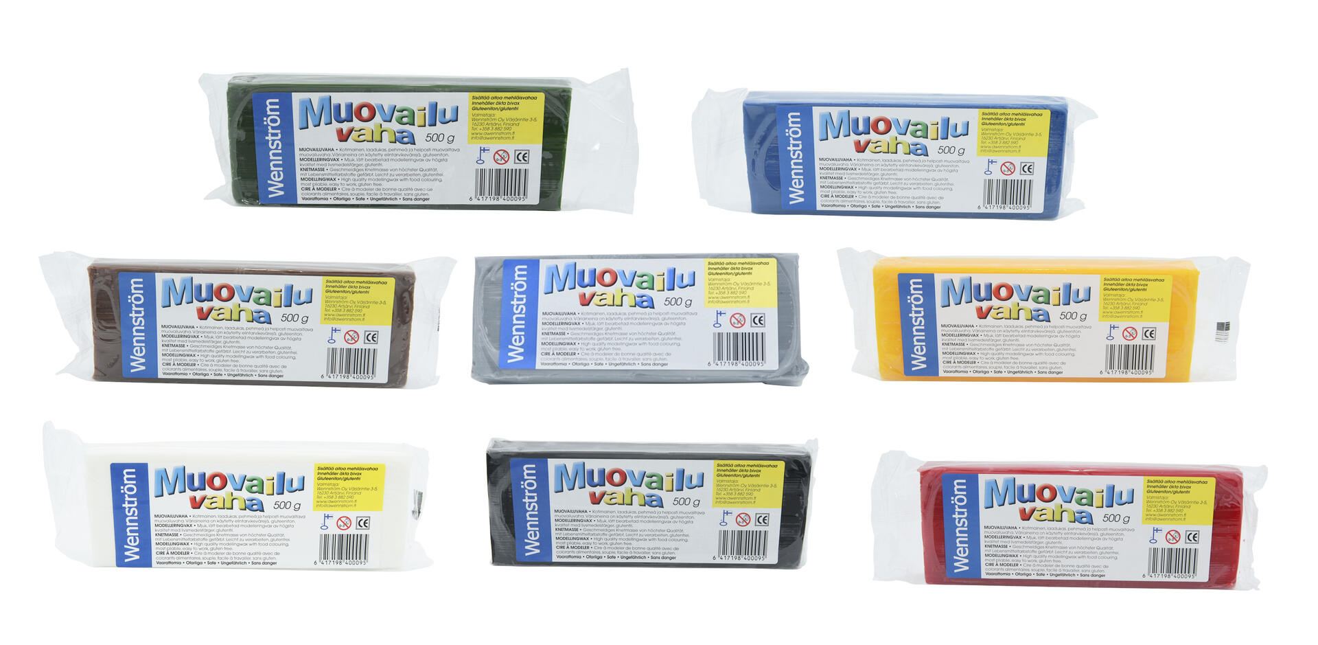 500 g/fp. Modellera tillverkad av rent bivax och infärgad med matfärg. Svår att forma kall, men lätt att varma i händerna. Kladdfri. Från 3 år. PVC-fri.