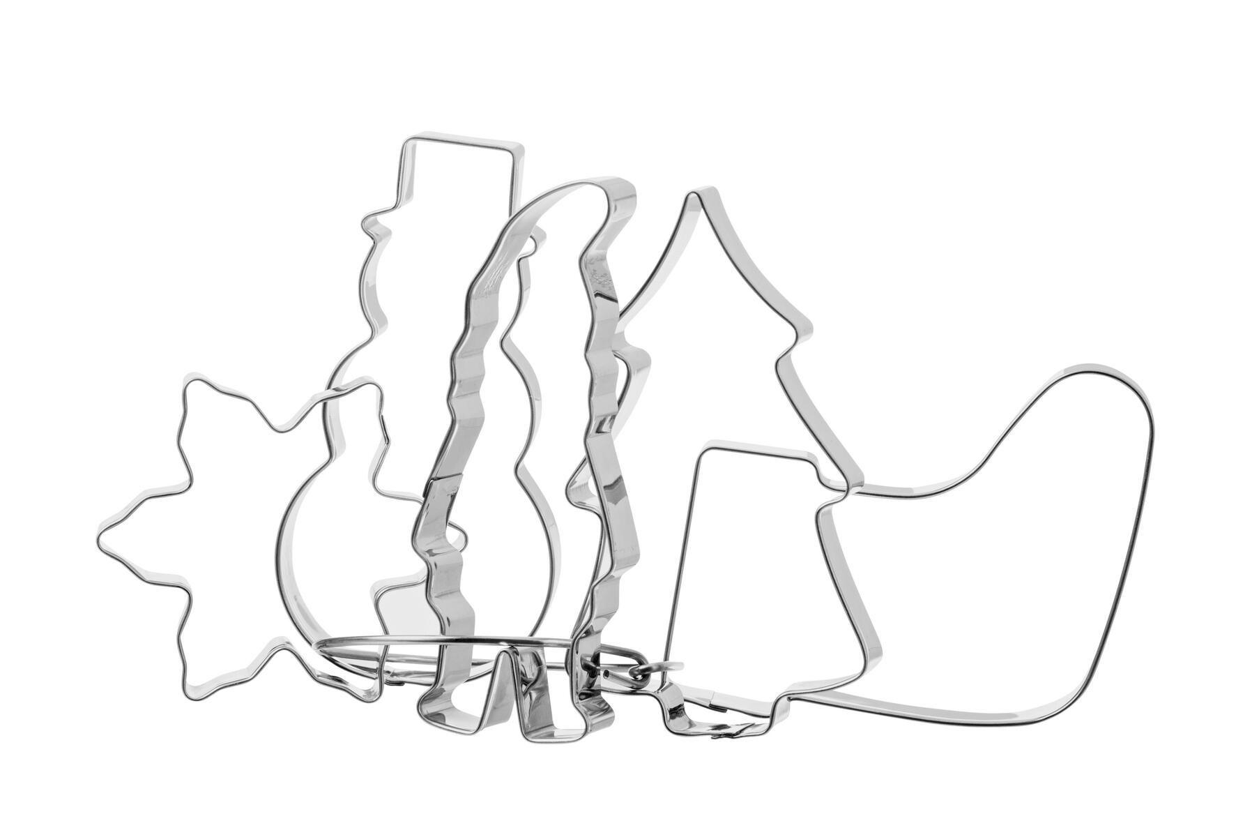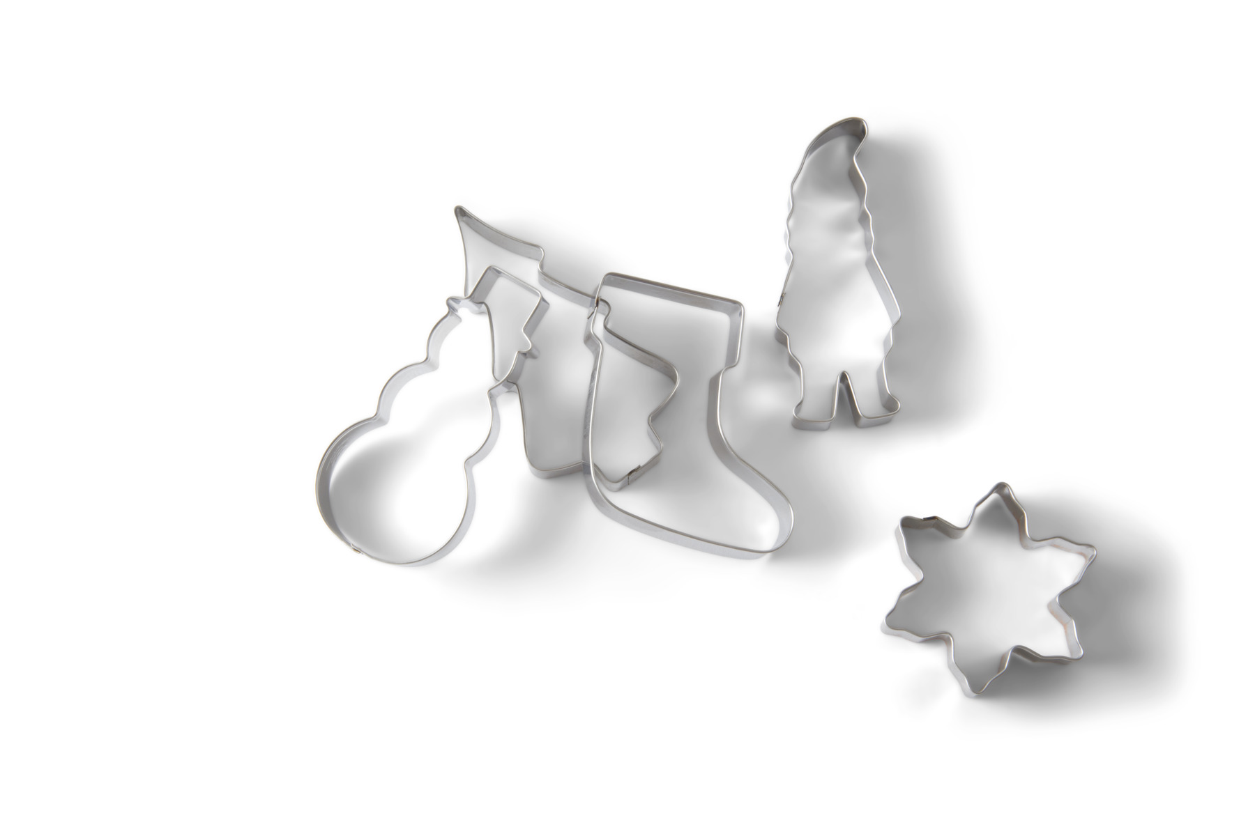 5 st/fp. Livsmedelsgodkända stansformar av rostfritt stål. Innehåller julstrumpa, stjärna, julgran, snögubbe och tomte. Mått: H7,5–12 cm. B4,5–7,5 cm. Tål maskindisk.