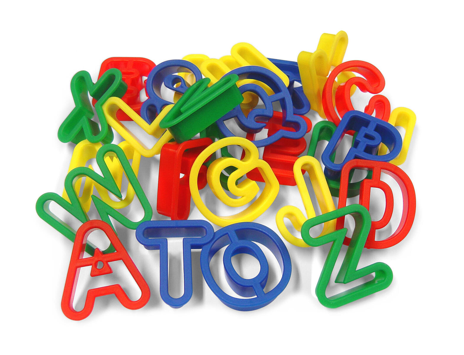 42 delar/fp. Siffer- och bokstavsformar för lera. Innehåller 1 rullkavel, 1 plastkniv, siffrorna 0-9, tecknen för addition, subtraktion, multiplikation, division och bokstäverna A-Z. Siffror och bokstäver är ca 4 cm höga. Fyra blandade färger. Tillverkade av PP-plast. Ej för barn under 3 år.