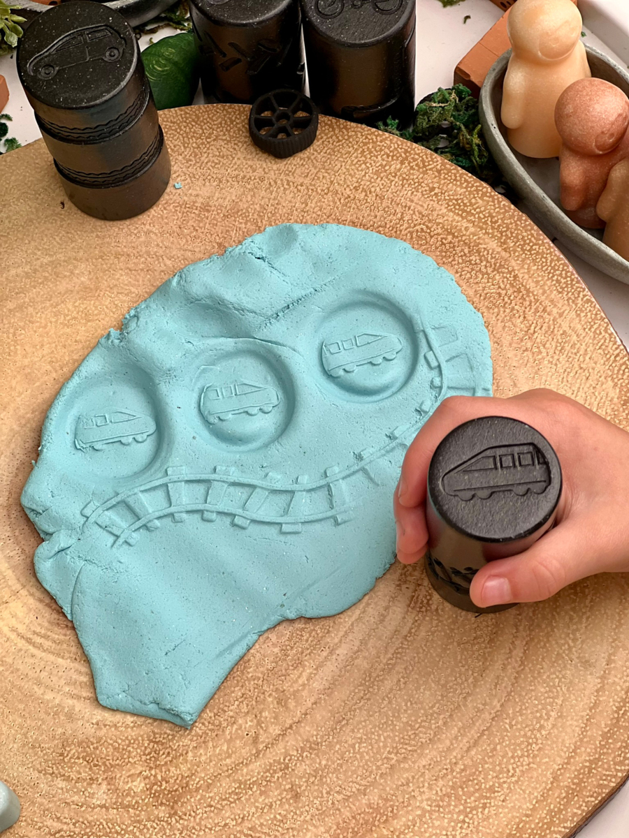 6 st/fp. Rulla i lera eller sand och stämpla kortsidan för att få fram de ingraverade motiven. På dessa rullar finns ramsor och sånger: Blinka lilla stjärna, Hickory Dickory Docka, Imse vimse spindel, Fem små grodor och Hjulen på bussen. Mått: 72x34 mm. Av stenmix. PVC-fri. Från 2 år.