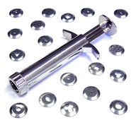Skapa spännande mönster och former i lera. Ta bort kolven för att föra in lera i pipan. Välj en av formarna och skruva på plats i slutet av cylindern. Tryck på kolven för att extrudera en mönstrad lera. Passar fint för modellera, och andra typer av mjuk lera. 18 formar med olika mönster medföljer. Längd 95 mm. Av metall.