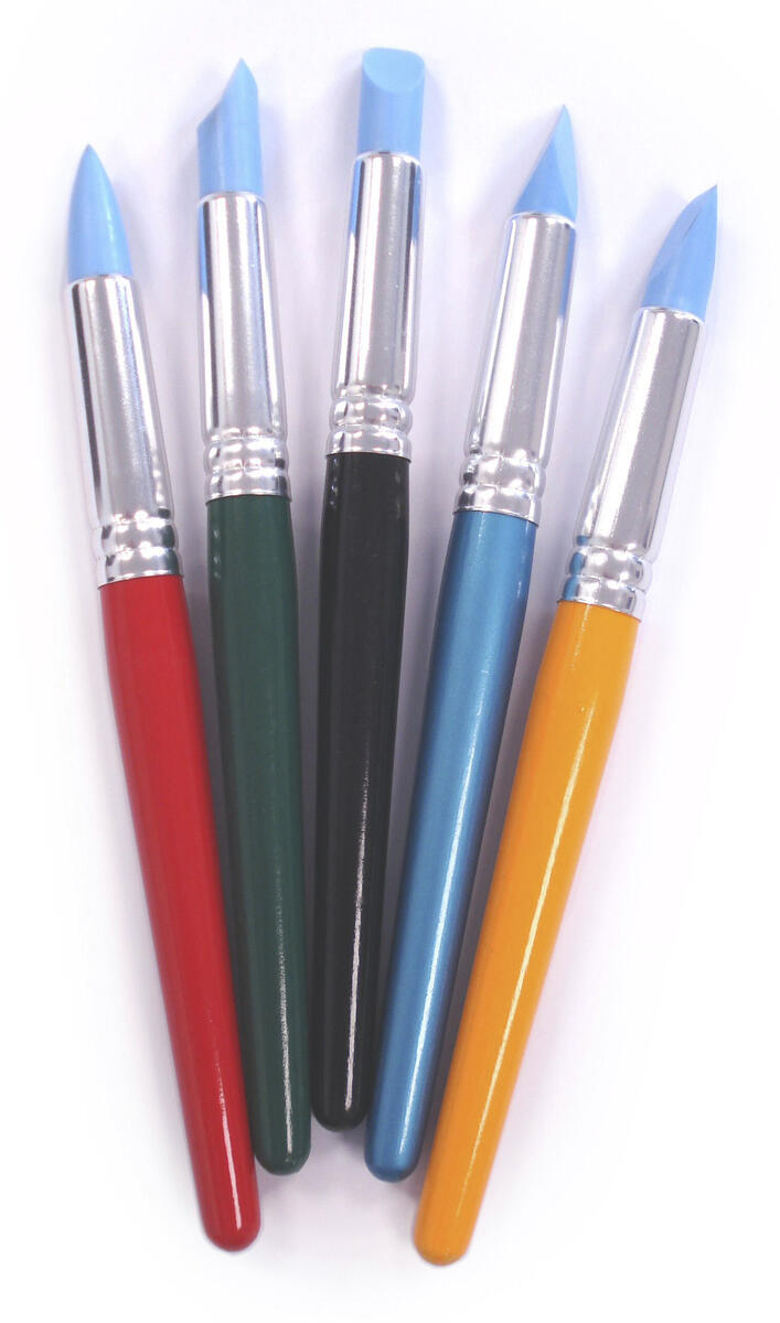 5 st/fp. Lerspatlar för modellering och skulptur. Av buxbomsträ som inte fäster mot leran. Innehåller 5 olika modeller: spatlar med rundad spets, diagonal, diagonal taggad, rak taggad, mjuka radier. Längd 15 cm.