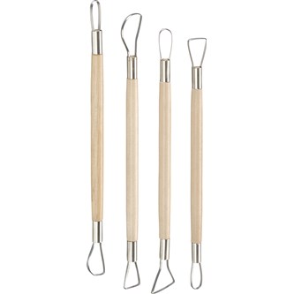 10 st/fp. Lerspatlar för modellering och skulptur. Av buxbomsträ som inte fäster mot leran. Innehåller 5 olika modeller: spatlar med rundad spets, diagonal, diagonal taggad, rak taggad, mjuka radier. Längd 15 cm.