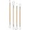 5 st/fp. Lerspatlar för modellering och skulptur. Av buxbomsträ som inte fäster mot leran. Innehåller 5 olika modeller: spatlar med rundad spets, diagonal, diagonal taggad, rak taggad, mjuka radier. Längd 15 cm.