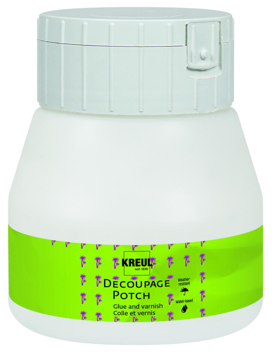 250 ml. Torkar blankt. Vattenbaserat lack, som först läggs under motivet som lim och sedan ovanpå som lack och skyddande yta. Som motiv kan t.ex. servetter och bokmärken användas. Passar på de flesta underlag, t.ex. papper, trä, askar, målardukar och styropor.