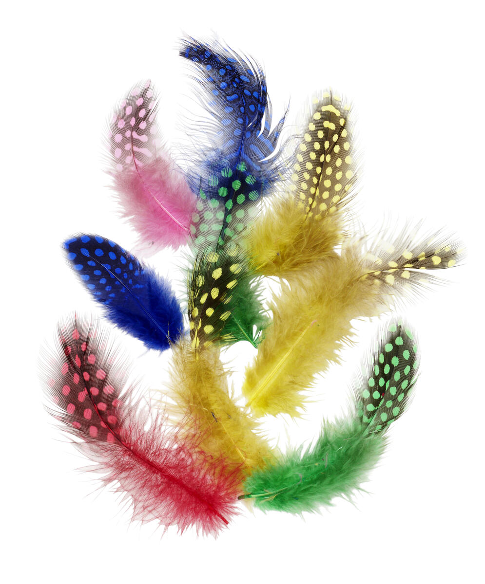 68 g/fp. Syntetiska fjädrar av polyester på ståltråd. Innehåller färgerna gul, grön, blå, orange och rosa. Längd 15 och 22 cm. PVC-fri.