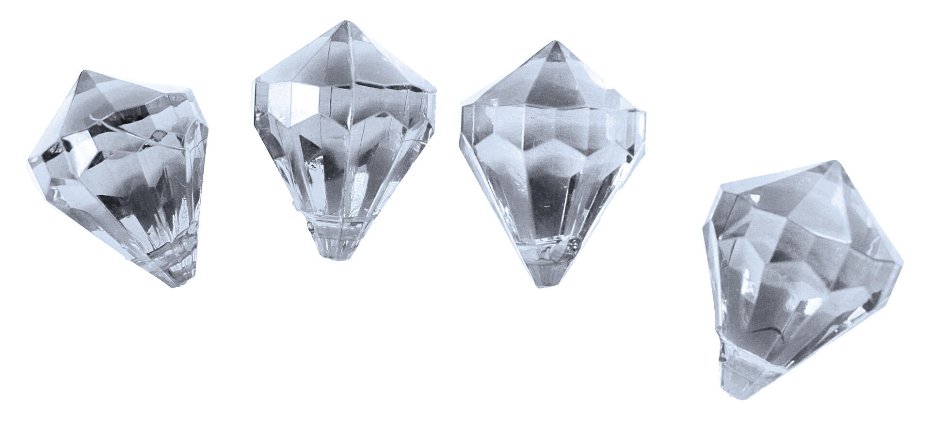 50 st/fp. Skimrande prismor i diamantform med hål för upphängning. 15mm x36mm. Av akrylplast.