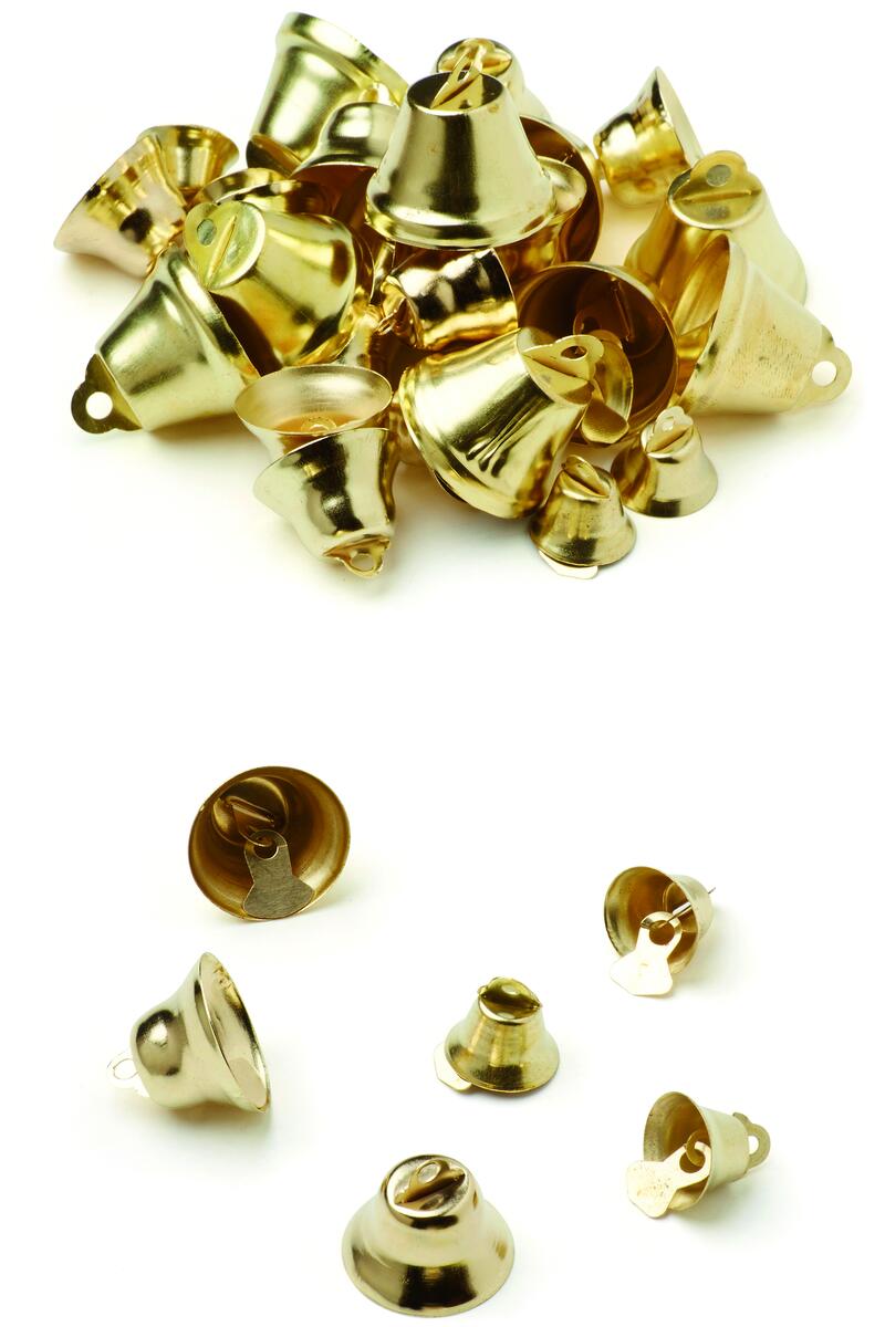 100 st/fp. Guldfärgade klockor i tre olika storlekar. ø 25 mm, ø 18 mm och ø 15 mm. Av förzinkat järn. PVC-fri.