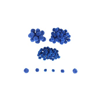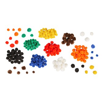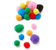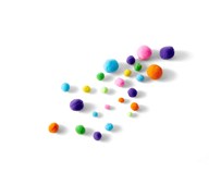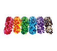 6 askar/fp. 250 st/ask. Varje ask har pompoms ton-i-ton i klara färger. Innehåller toner av gult, rött, lila, blått, grönt och grått. ø 20 mm. Från 3 år.