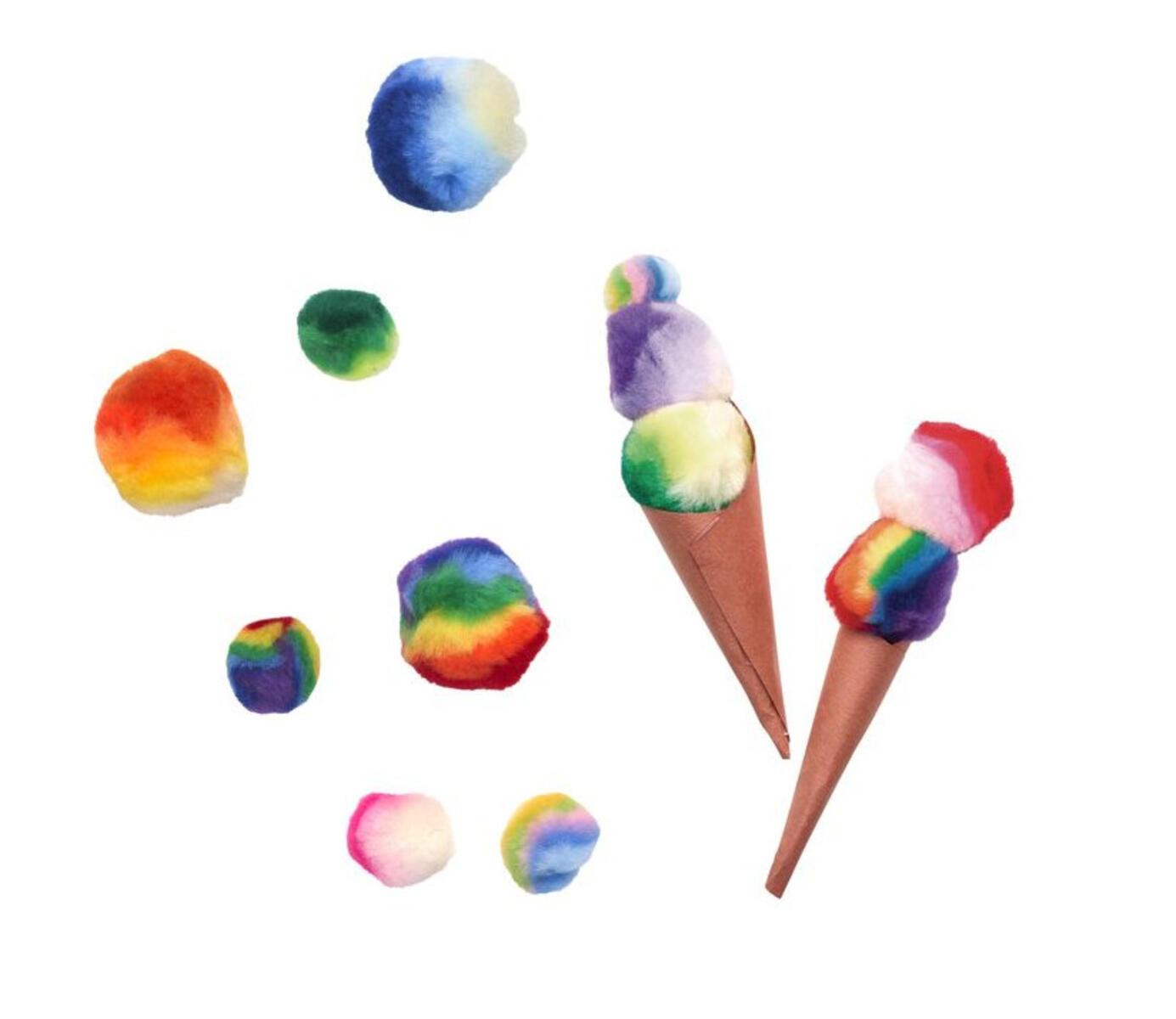 6 askar/fp. 250 st/ask. Varje ask har pompoms ton-i-ton i klara färger. Innehåller toner av gult, rött, lila, blått, grönt och grått. ø 20 mm. Från 3 år.