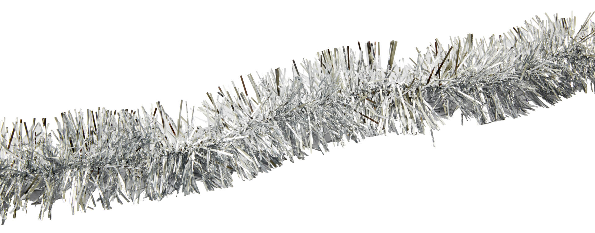 1 st/fp. Girlang med tätt silverfärgat glitter för julgran, fönster etc. Mått: L 2 m, ø 7 cm. Tillverkad av polyester och järn.