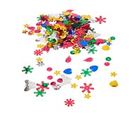 Paljetter med julmotiv i många olika färger. Klistra dem på ett papper och skapa egna julkort, inbjudningskort eller julhälsningar. Dekorera julklapparna eller placera på julbordet för en extra julig känsla. Av PET. 50 g ø 3-38 mm.