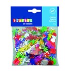200 g/fp. Paljetter i blandade färger och former. Storlek mellan 1-2 cm. Av PET. PVC-fri.