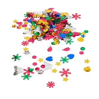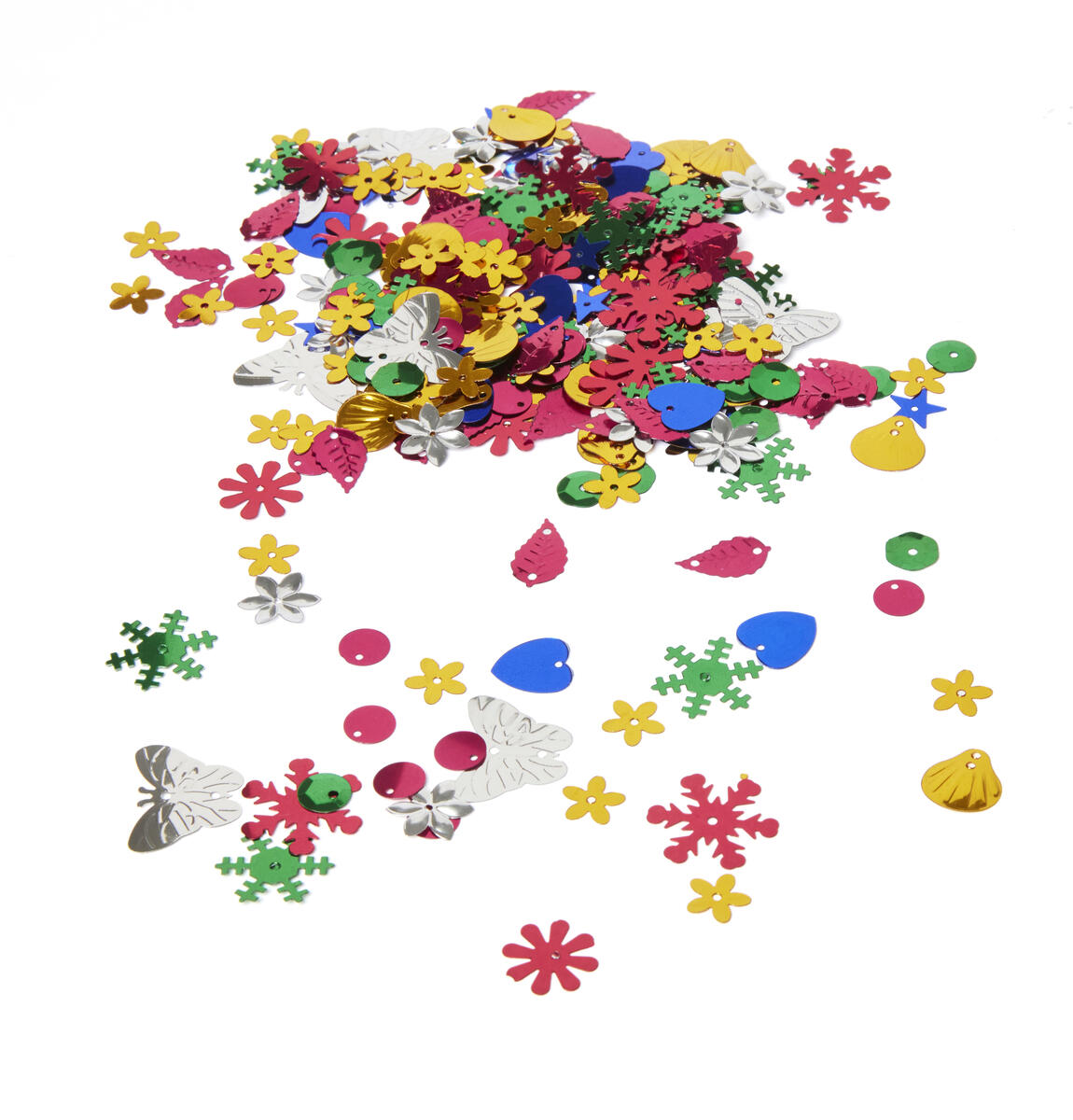 Paljetter med julmotiv i många olika färger. Klistra dem på ett papper och skapa egna julkort, inbjudningskort eller julhälsningar. Dekorera julklapparna eller placera på julbordet för en extra julig känsla. Av PET. 50 g ø 3-38 mm.