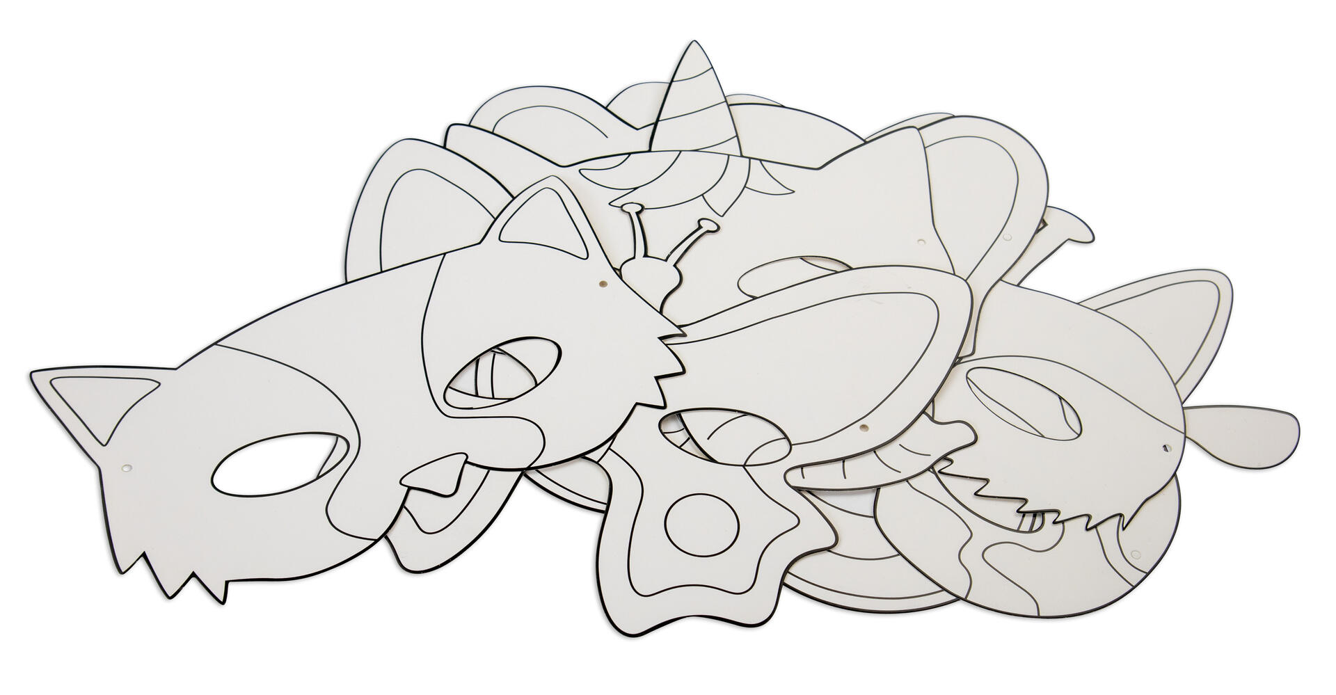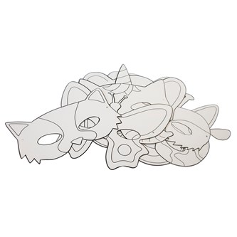 16 st/fp. Vita pappmasker med 8 olika djuransikten. Färglägg och fäst ihop den med tillhörande gummisnodden och förvandlas till ditt favoritdjur. Mått: 23x27 cm. Av kartong, 210 g. PVC-fri.
