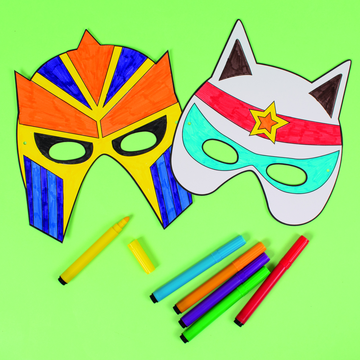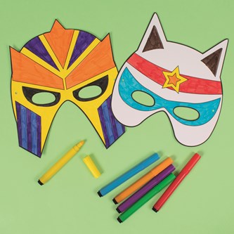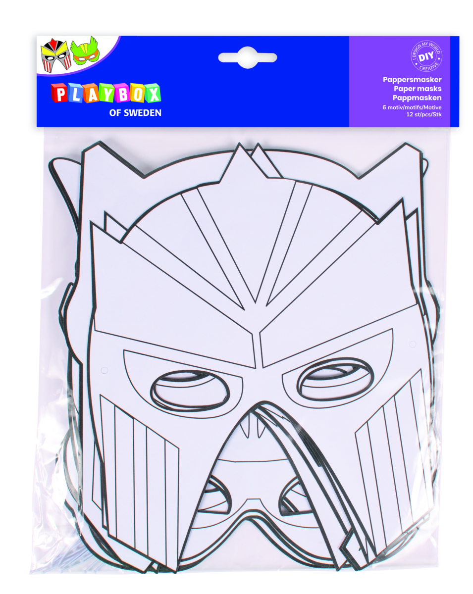 12 masker/fp. Vita pappmasker med sex olika superhjältemotiv. Måla, dekorera och förvandlas till din favorithjälte. Mått: ca 23x 21 cm. Gummisnodd ingår. Av FSC-certifierat papper.
