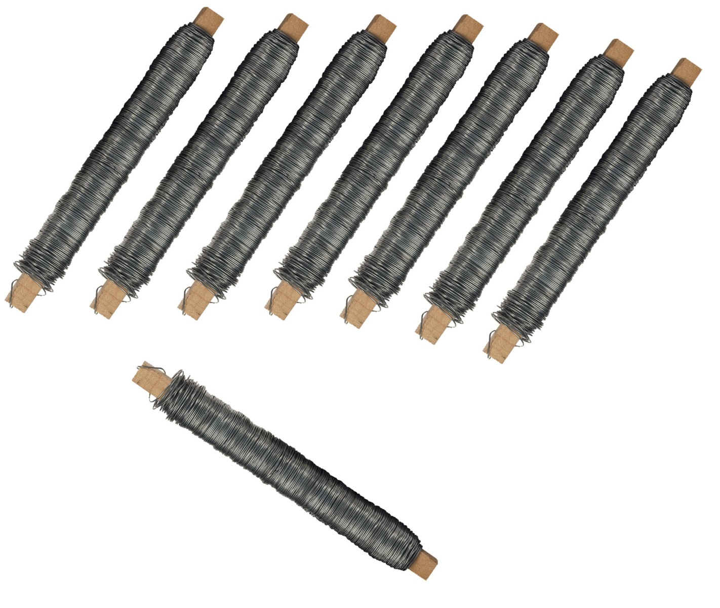 35 m/rulle. Gråsvart ståltråd. ø 0,65 mm.