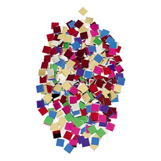 250 g/fp. Ca 10 000 st/fp. Mosaikbitar av glänsande metallkartong i blandade färger. Mått: 1x1 cm.