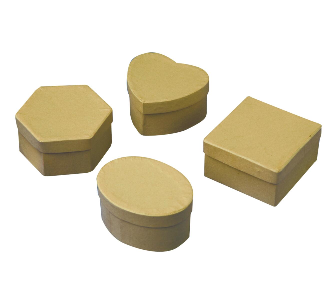 36 askar/fp. Vita pappaskar att måla och dekorera på olika sätt. Använd glitter, mosaik, bokmärken, pärlor, band, dekorationsfärg eller använd decoupagelack. I setet ingår 3 olika storlekar av varje form, hjärtan 12x12 cm, fyrkantiga, 10x10 cm, ovala, 14x11 cm och runda, ø 10 cm. Måtten avser de största askarna.
