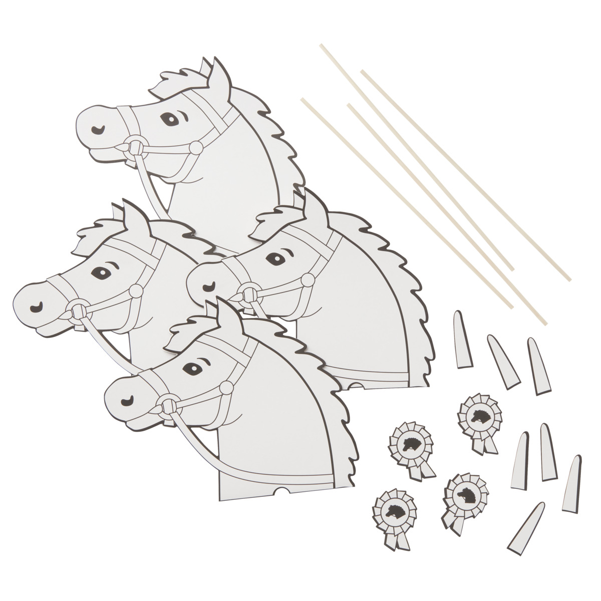 4 st/fp. Dekorera huvudet till din egen käpphäst eller enhörning. Fäst det sedan på käppen och du är redo att börja tävla. Ingår 4 pappershuvuden, 4 pappershorn, 4 pappersmedaljer, 4 träpinnar och 32 klisterprickar. Mått: Huvud: 286x240, Käpp: 35x5 cm. PVC-fri.