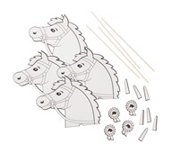4 st/fp. Dekorera huvudet till din egen käpphäst eller enhörning. Fäst det sedan på käppen och du är redo att börja tävla. Ingår 4 pappershuvuden, 4 pappershorn, 4 pappersmedaljer, 4 träpinnar och 32 klisterprickar. Mått: Huvud: 286x240, Käpp: 35x5 cm. PVC-fri.