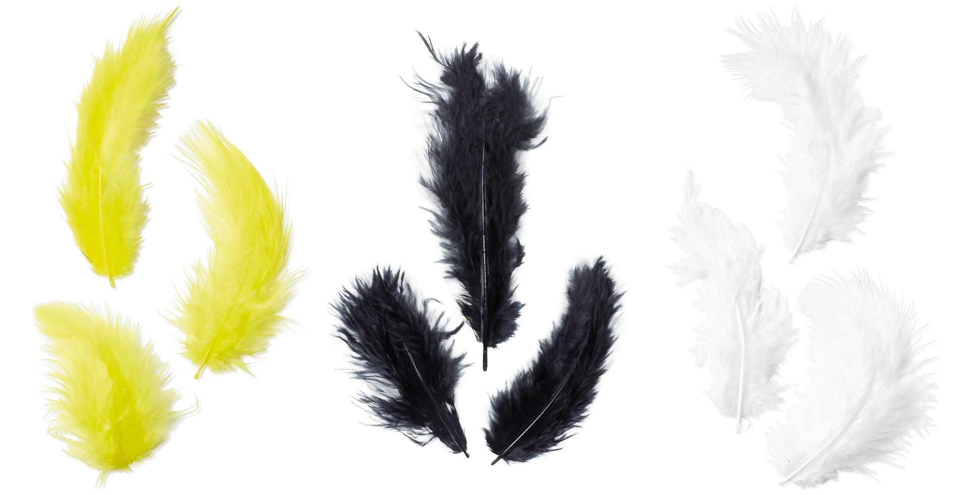 100 g/fp. Storpack av fjädrar i blandade färger och storlekar. Mått 5-11 cm. PVC-fri.