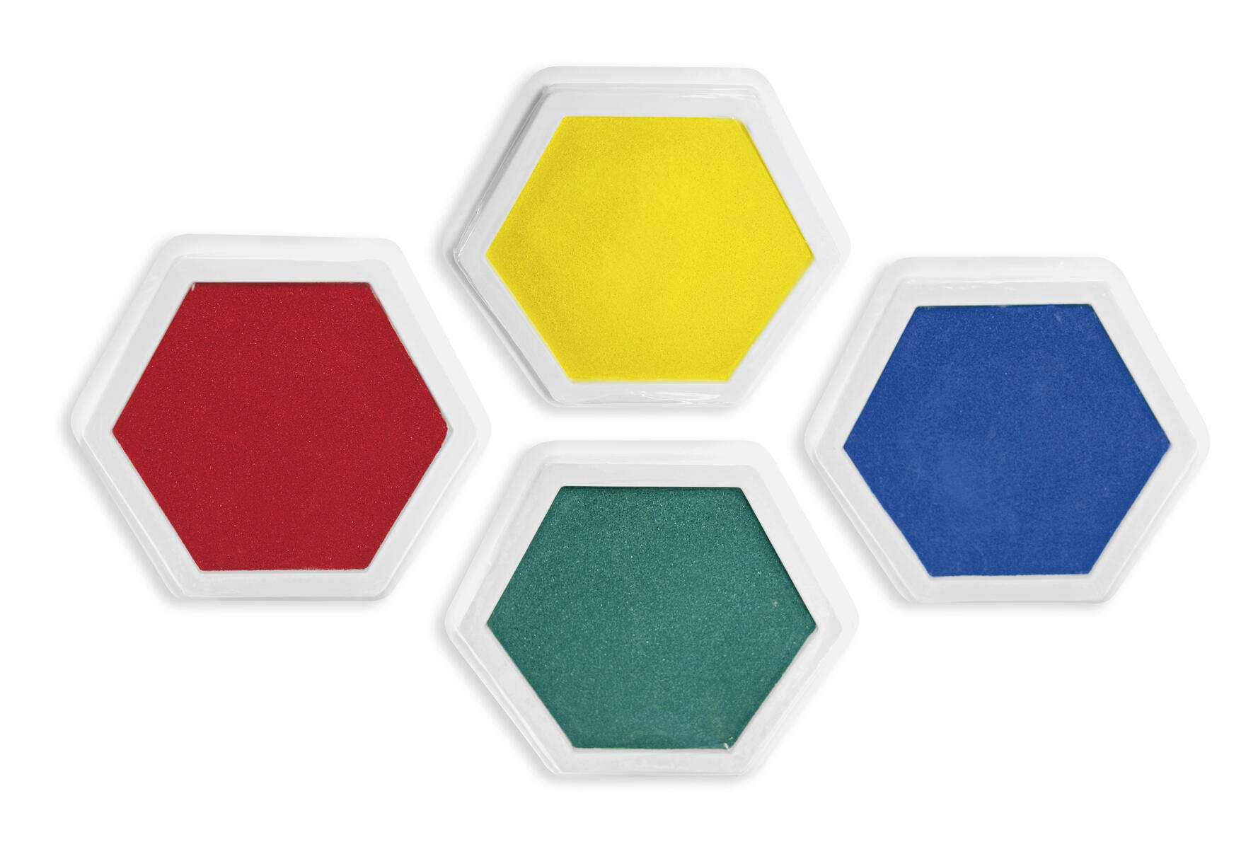 4 st/fp. Stor stämpeldynor. För bästa effekt spraya dynorna lätt med vatten innan användandet så bläcket hålls fuktigt. Innehåller gul, röd, blå och grön stämpeldyna. Mått 14 x 14 cm. PVC-fri.