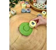 26 st. Stadiga gemena alfabetsstenar med en ingraverad och målad bokstav på toppen och insänkt bokstav under för att stämpla. Konsonanter är röda, vokaler är blå. För att få å, ä, ö, eller ø kan man lägga till ringar, streck eller prickar (æ är lite klurigare). Kan användas både inomhus och utomhus. Mått 4x3,5x3 cm. Från 2 år.