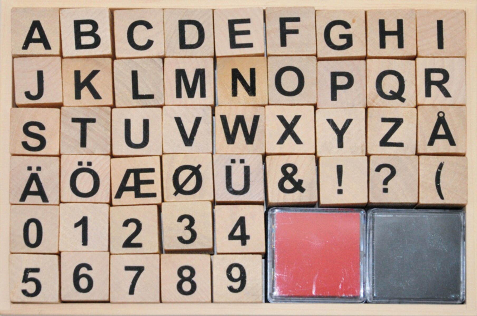 Titel: Bokstavs- och sifferstämplar i trä A-Ö 46 delar