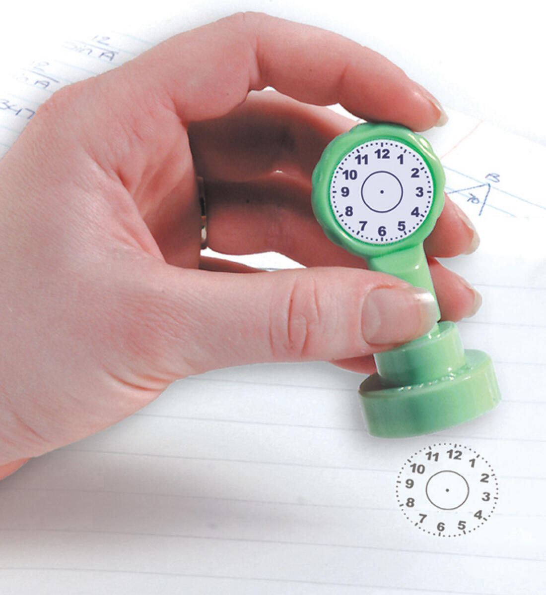 Stämpla, kasta tärningarna och säg vad klockan är. På detta vis lär sig barnen klockan både analogt och digitalt samtidigt som de har roligt. Inkluderar en stor stämpel som kan användas med valfritt bläck och två tärningar. PVC-fri.