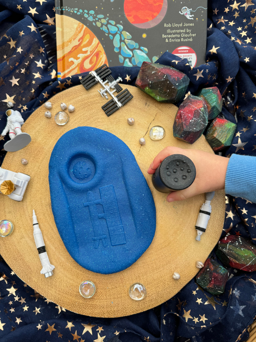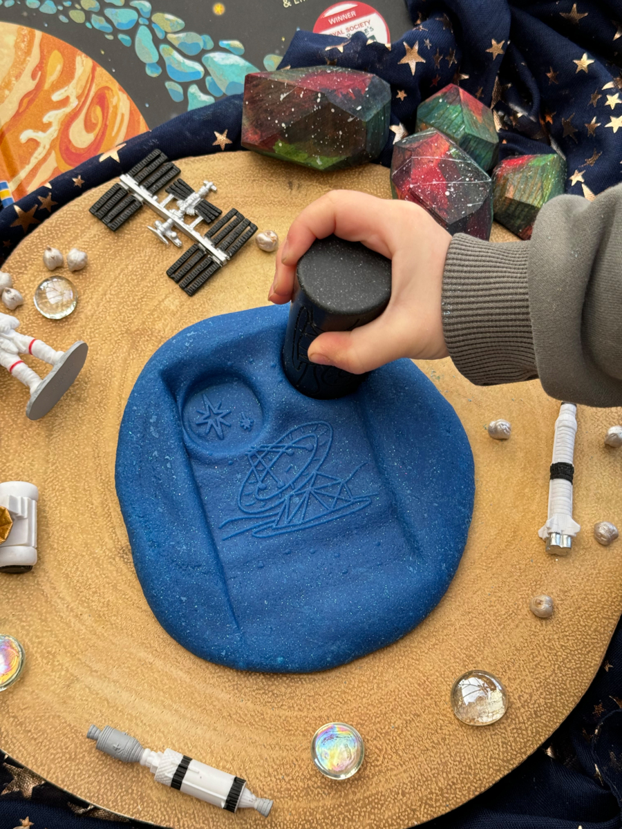 6 st. Rulla och stämpla i lera för att få fram fascinerande motiv från rymden med astronauter, raketlandningar, rymdpromenader med mera. Setet inkluderar astronaut och hjälm, månlandare och månlandskap, månen och raketuppskjutning, solen och solsystemet, rymdpromenad och rymdkapsel samt stjärnor och teleskop. Material: sten. Mått: 7,2x3,4 cm. Från 2 år.