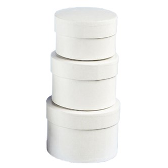 3 st/fp. Vita pappaskar i tre olika storlekar att måla och dekorera på olika sätt. Använd glitter, mosaik, bokmärken, pärlor, band, dekorationsfärg eller använd decoupagelack. Mått på största asken ø 12 x 4 cm.