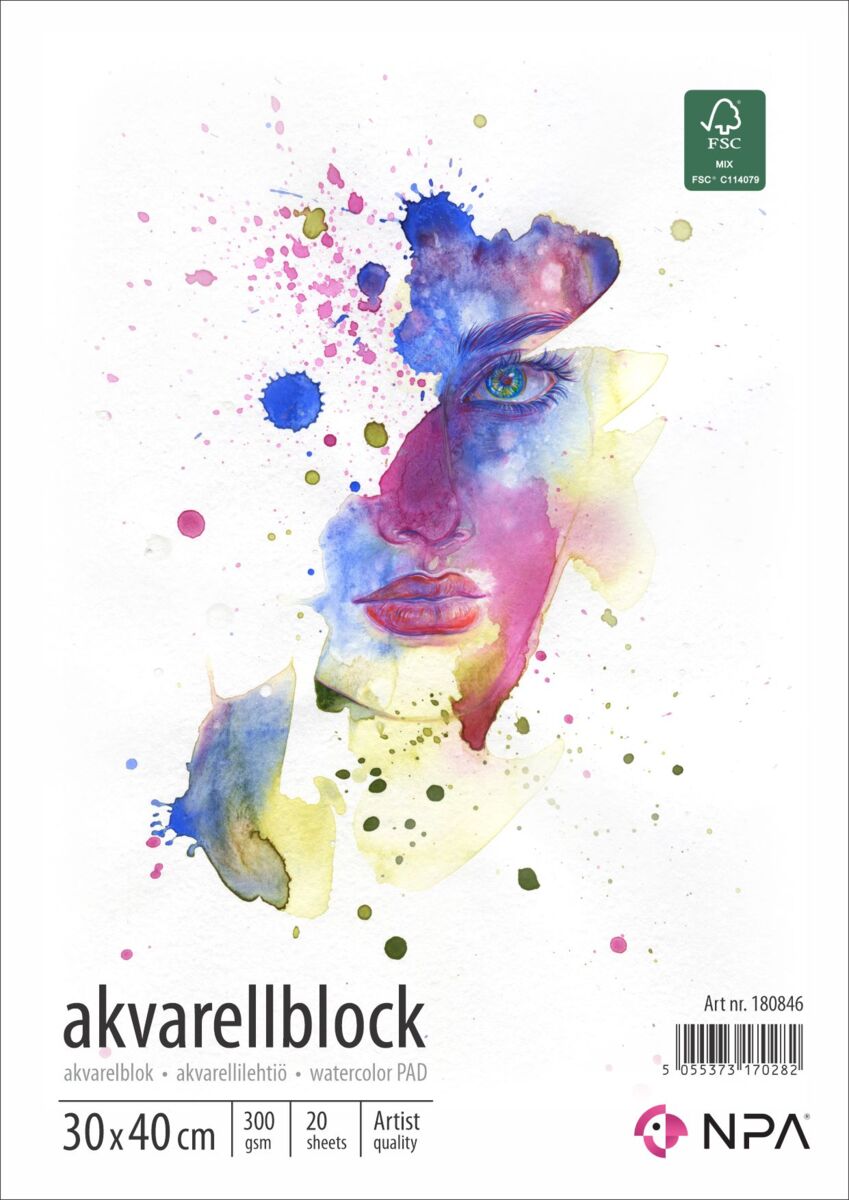 1 st. Blocket innehåller 40 ark. Kraftigt papper, 300 g, i hög kvalitet för akvarellfärg. Mediumgräng, kallpressat, träfritt, syrafritt och ligninfritt. Blocket är limmat i ovankanten. Träfritt, syrafritt och ligninfritt.