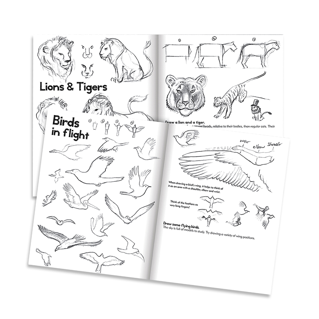 En bok med enkla instruktioner om hur man tecknar djur. Olika djur i rörelse, eller i varierade vinklar. Innehåller illustrationer och text om hur man gör steg för steg, och plats att öva på. Engelsk text. 32 sidor.