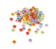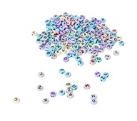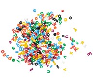 500 st/fp. Ca 70 g/fp. Runda alfabetspärlor A-Ö. Färgade bokstäver på vit botten. Bokstäverna är nedsänkta i pärlan vilket gör att färgen håller längre. ø 7,5 mm. Håldiameter 1,3 mm. Av Akrylplast. PVC-fri. Från 3 år.