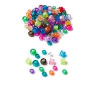 1 000 st/fp. Plastkuber med siffror, nordiska alfabetet A-Ö och små hjärtan i fina transparenta färger. Mått: 6x6 mm. Håldiameter 3 mm. Av akrylplast. PVC-fri. Från 3 år.