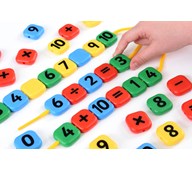 Innehåller totalt 116 pärlor och 12 snören. Ett roligt och lärorikt material där barnen får träna på siffrorna 1-10 och bygga ekvationer genom att trä upp pärlorna på snören. Pärlorna är numrerade från 1-10 och innehåller även färgkodade matematiska tecken som plus, minus, mulitiplikation, division samt lika med. Pärlorna stannar kvar på snöret även om du håller snöret upp och ned. Tvättråd: Handtvätt med mild ytdesinfektion. PVC-fri. Från 3 år.