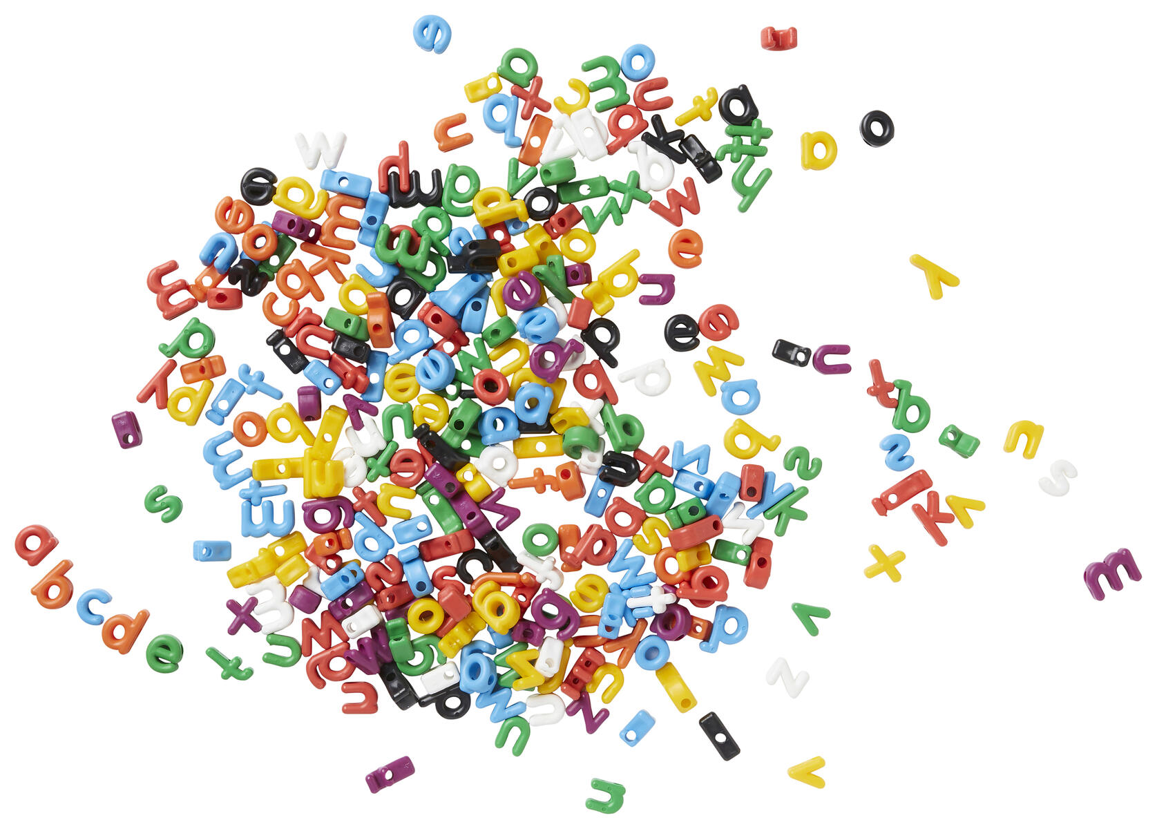 500 st/fp. Ca 70 g/fp. Runda alfabetspärlor A-Ö. Svarta bokstäver på vit botten. Bokstäverna är nedsänkta i pärlan vilket gör att färgen håller längre. ø 7,5 mm. Håldiameter 1,3 mm. Av akrylplast. PVC-fri. Från 3 år.