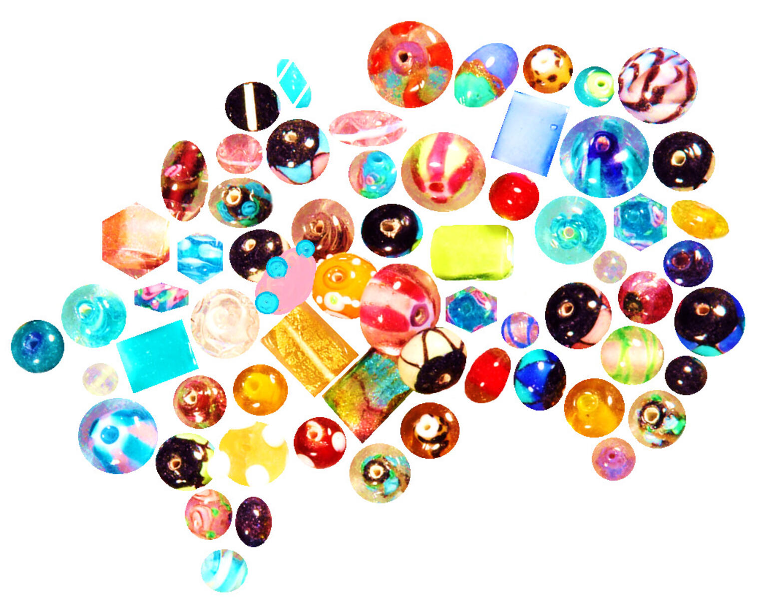 1 kg/fp. Storpack vackra glaspärlor i blandade former, färger och storlekar. Innehållet variera per leverans. Håldiameter ca 1 mm. PVC-fri.